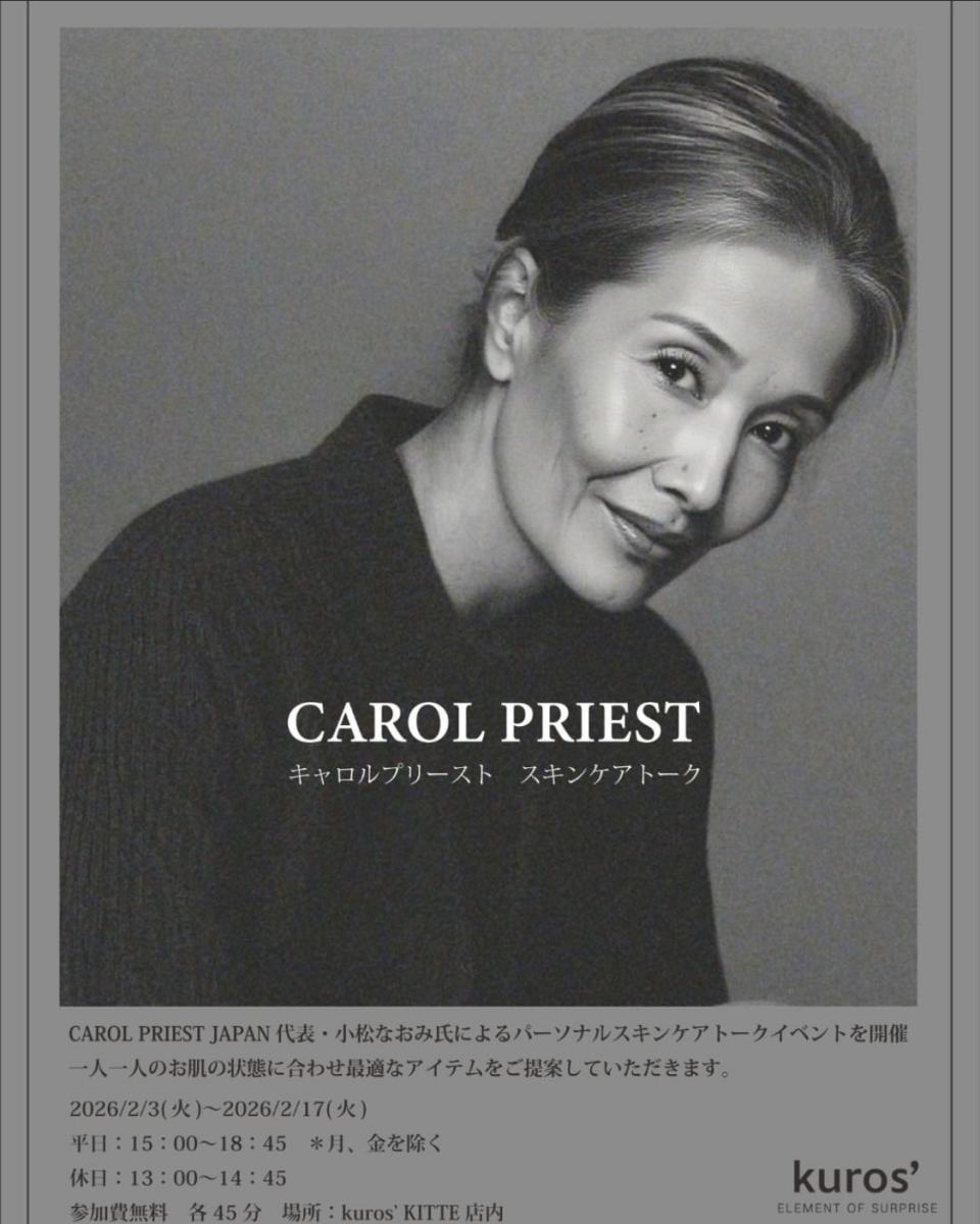 CAROL PRIEST Japan代表・小松なおみによるナチュラルスキンケアカウンセリングを実施します。